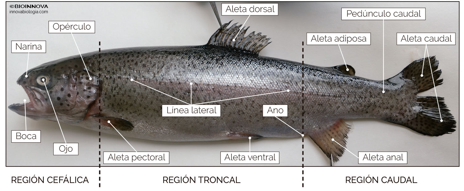 - Troncal (tronco): desde la parte posterior del opérculo hasta el ano.