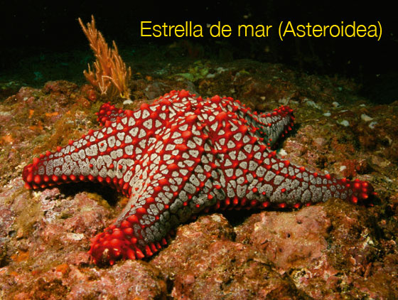 Los fluidos corporales de la mayoría de invertebrados marinos, como las anémonas (izquierda) o las estrellas de mar (derecha), fluctúan con el medio ambiente. Estos animales son osmoconformistas y no pueden regular el balance hídrico y salino. Algunas especies intermareales pueden tolerar diluciones frecuentes del agua marina, mientras otros toman activamente iones a través de las branquias para compensar la pérdida de iones por la orina.